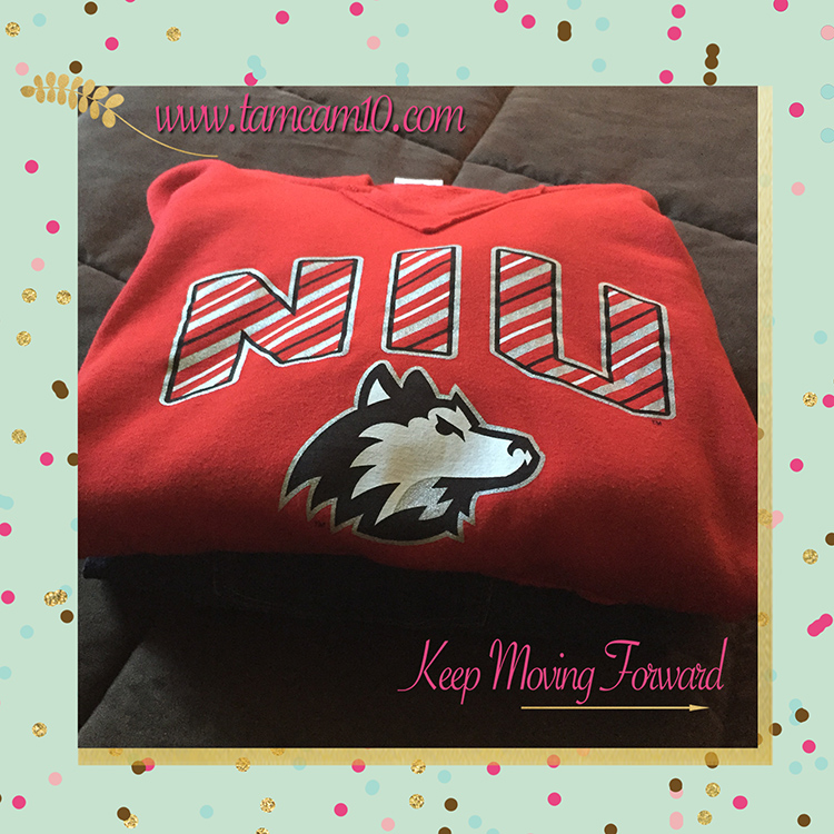 For the past two years I have gone with my friend Debbie to see her son play football at Northern Illinois University. Last year I purchased the sweatshirt above, this year it is fitting a little tight. On October 24th we will be on our way to NIU for our annual trip, I would like wear this sweatshirt again and to have it fitting comfortably. I also dug out a pair of jeans from my closet that I haven’t had on in a while, they were a bit tight. My goal for the jeans is that when I wear them they don’t dig into my belly! So, deep breath, here is my before picture of my NIU outfit….