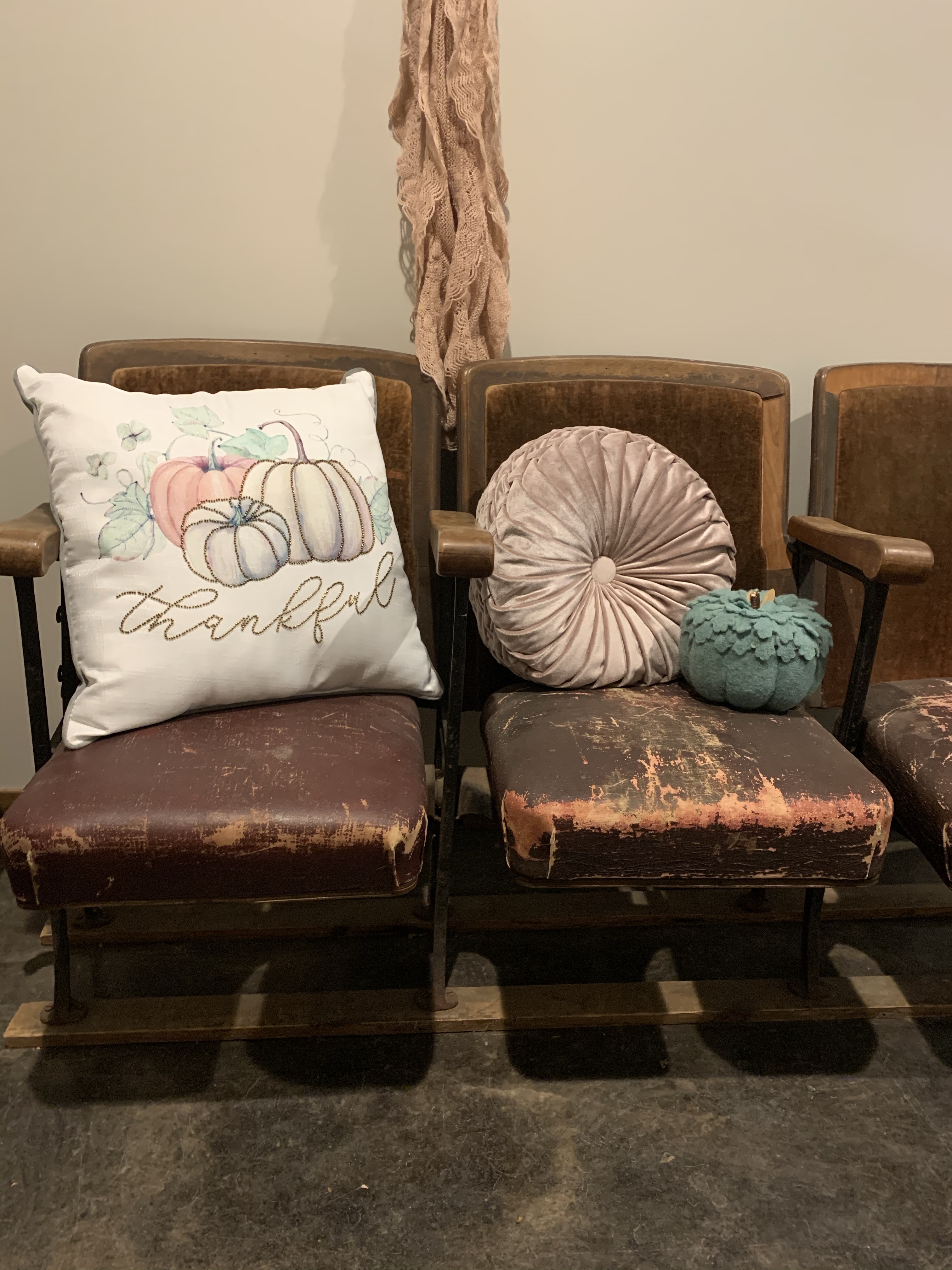A few new pillows for Fall, but these are more “pretty” fall colors then the usually colors pull everything together.