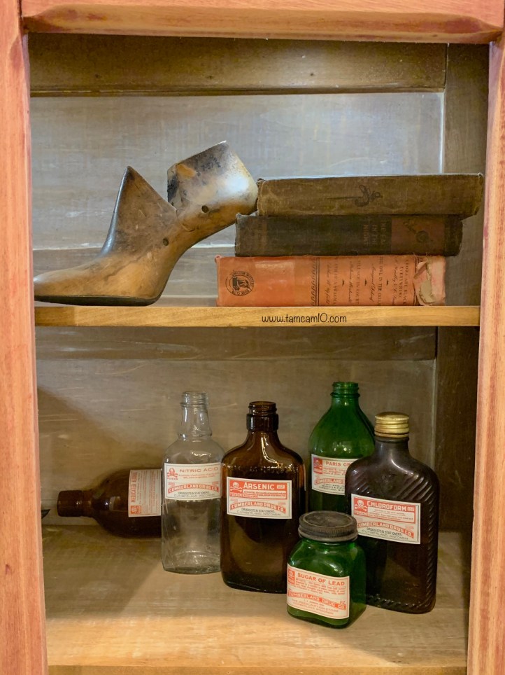 What Halloween decor is not complete with some poison bottles? Even though the bottles are fake the labels are real from a local Pharmacy.